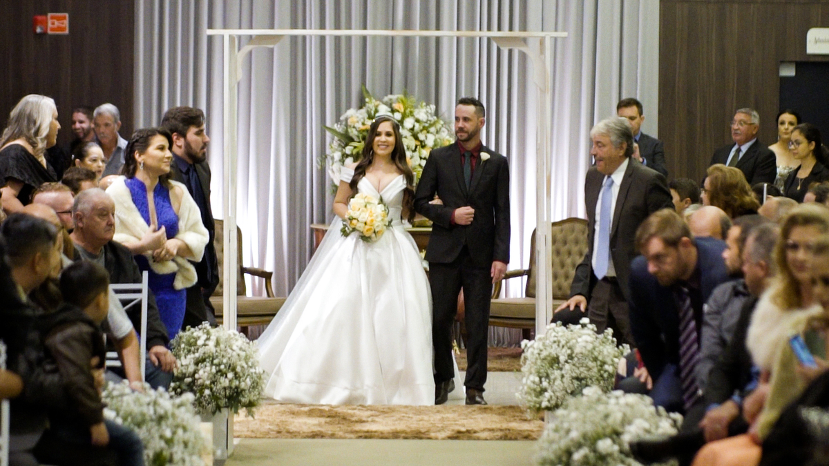 Filme editado e reproduzido durante a festa de casamento dos noivos Jaqueline e Luiz.